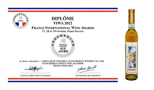 2022年2月生产的“脱醇葡萄酒”获得“FIWA法国国际葡萄酒大奖赛银奖”。