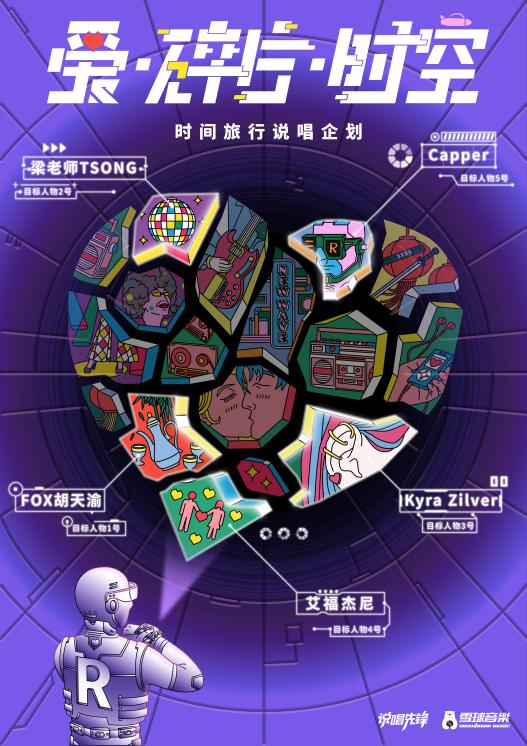 时光旅行说唱企划以“爱·碎片·时空”为主题,致力于打造更多高质量歌曲。五位歌手分别穿越到古代时期、80年代、90年代、千禧年和未来时期,演绎不同时代的爱情故事。