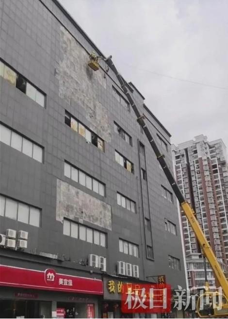 2022年4月12日,受大风天气影响,湖北省安陆市永安广场东侧外墙部分墙砖自然脱落。