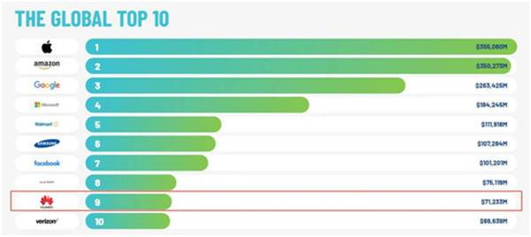 在2022年1月英国机构发布的《2022年全球品牌价值500强报告》中,华为排名第9!作为中国品牌,华为不仅在5G技术领域拔得头筹,在芯片设计、通信设备领域也走在世界前列。