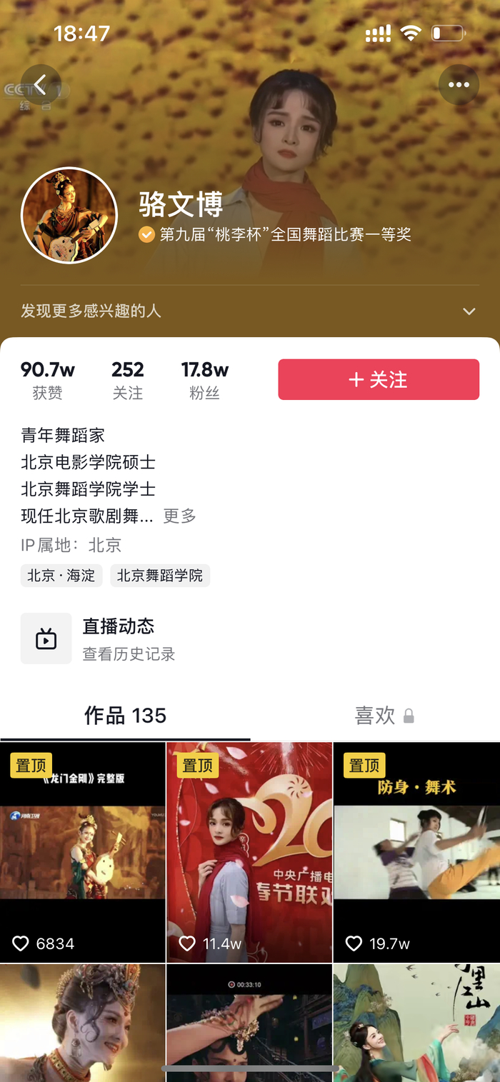 《青春万岁》还融合了年轻人喜爱的国风元素,抖音用户,青年舞蹈家骆文博的舞蹈作品《问天》既以传统文化艺术形式走向观众,又以更贴近年轻人的视角唤起观众的情感共鸣,一同舞出青春魅力。