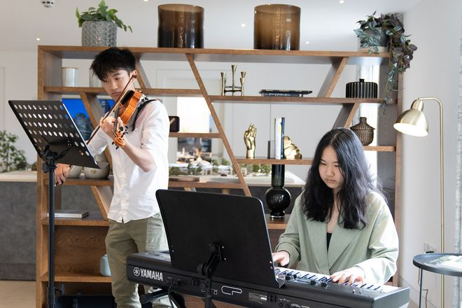 图注:配乐钢琴手 Sandy Chen、小提琴手 David Xu、青年歌手 Sonia Lai 给贵宾带来了精彩演出。