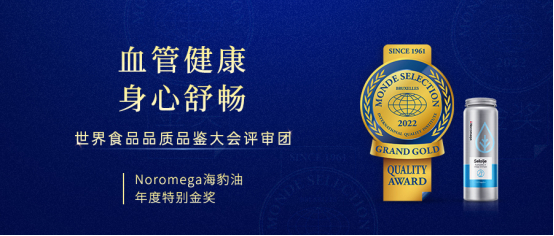 Noromega凭借原产地优势与优质品质摘下“双金”,旗下产品Noromega虾青素胶囊荣获“2022年度 MONDE SELECTION 金奖”;海豹油胶囊更是被授予特别大奖——“2022年度 MONDE SELECTION 特别金奖”。