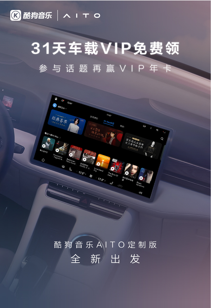 酷狗音乐AITO定制版已上车!华为HarmonyOS智能座舱再添新体验