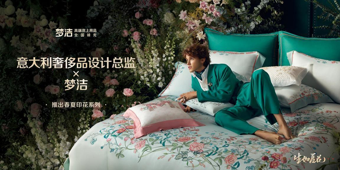 在此之后,梦洁还联合前GUCCI印花设计总监,联名推出春夏印花系列新品,带来前GUCCI印花设计总监×梦洁联名款。凭借突出时尚设计,前GUCCI印花设计总监×梦洁联名款一经推出,便引起了众多明星、KOL时尚达人的广泛关注,被诸多时尚大V、新锐设计师选购种草,成为了今年春天的家居床品风向标。