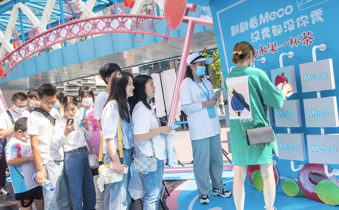 在华中科技大学、光谷等教育资源集中的战略要地,Meco在光谷的步行街和商圈举办了Meco品牌大型快闪活动,通过强调时尚、年轻、爱玩的品牌态度,结合代言人,通过创意互动,吸引众多消费者自主打卡,快速席卷武汉年轻消费者的朋友圈。