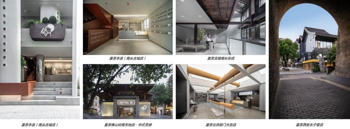 除了北京新中关店,喜茶还打造了融长安古今、城墙内外于一店的西安永宁里店,将榫卯、梁柱显性呈现并自成景观的北京前门店,以及把水乡古街老楼焕新再造的无锡南长街店等系列作品,完美地传达出了喜茶品牌的审美理念以及不拘一格的态度。