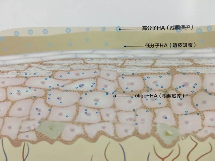 “玻尿酸=补水保湿”已然成为护肤界的普遍共识,但很多人不知道,玻尿酸根据分子的大小,还有大分子、中分子和小分子之分,作用也各不相同。大分子能成膜锁水,阻隔紫外线、细菌灰尘的侵入;中分子能够浅渗皮肤长久保湿;小分子的玻尿酸能渗透皮肤补水,轻微扩张血管,改善中间代谢,修复皮肤损伤。另根据500道尔顿法则,玻尿酸分子量大于500道尔顿的成分便会很难被皮肤所吸收。而滋沫玻尿酸精华的厉害之处就在于,运用独有的微分子科技将三种不同的玻尿酸分子量进行了科学配比与结合,形成了500道尔顿的小分子量,渗透力极强,携带的活性成分能够精准均匀渗透到皮肤,有效实现了补水保湿、修复屏障、改善敏感、延缓衰老等多重效果。