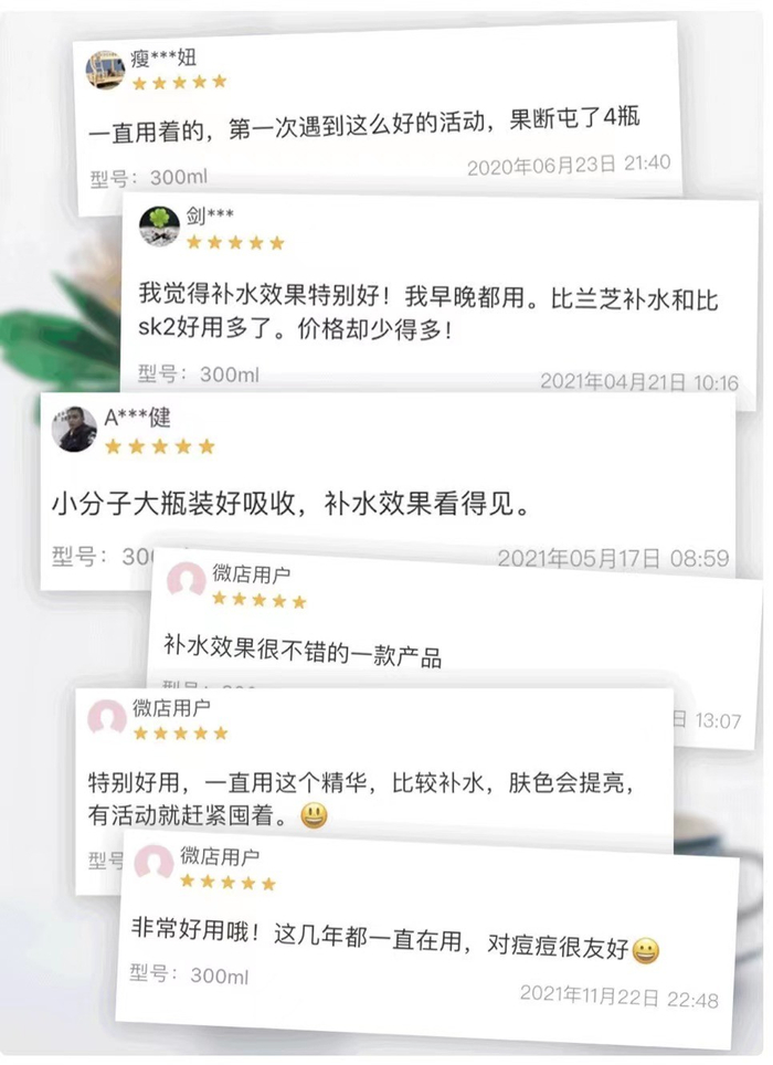 滋沫玻尿酸精华作为一款韩国原装进口的护肤品,其实在中国市场已经销售了十余年,补水效果有口皆碑,这款护肤品几乎都是经过口口相传的推荐和使用,沉淀了很多回头客和“死忠粉”,每位用过它的用户,都会感到爱不释手。