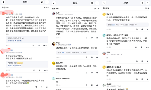 一位脉友也有同样的经历,同样是在互联网工作几年后转去高校。高校比较注重学历,设计系教师招聘最低要硕士以上,其他学院专业博士大片。进入高校后,他发现虽然自己薪资打折,但是时间大把,“寒暑假一起估计有100天了”。平时一周两次课,其余时间自由安排。做科研教学看自己,聘期的几年内虽然有一些考核,但难度也还好。