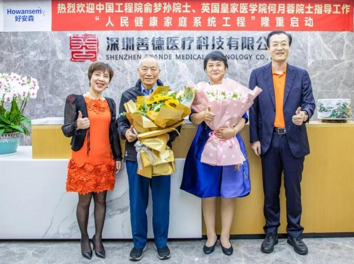 4月22日,“人民健康家庭系统工程”盛大启动!中国工程院俞梦孙院士,英国皇家医学院何月蓉院士(好安森大健康团队首席科学家),浙江小糖人医疗科技有限公司代表温锋,满金坝(深圳)科技有限公司董事长梁志军,好安森董事长赵广勇、总经理苏江星出席了启动仪式,两代院士共同为“人民健康家庭系统工程”揭牌。