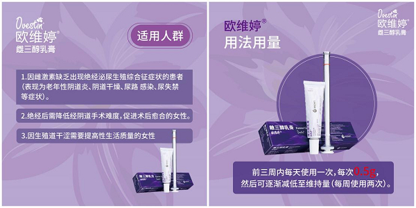 当前,随着我国老年人口的逐渐增多,越来越多进入绝经期的女性,正面临着包括生殖道萎缩、轻度尿失禁等多种疾病在内的绝经期泌尿生殖综合征(GSM)的困扰。欧维婷®(雌三醇乳膏)是治疗因雌激素缺乏导致的绝经期局部症状的有效药物,在欧美发达国家已经有着65年的历史,并已在全世界80多个国家临床使用。对于此次欧维婷®重新回归中国市场,业内专家表示了充分的期待。