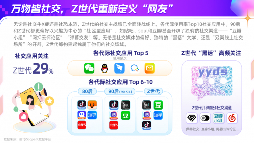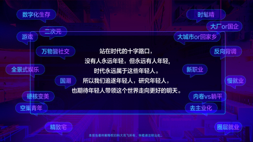 讯飞AI营销云“数说”系列洞察报告发布Z世代专题 ——《后浪奔涌,野蛮生长》,(以下简称《报告》),从兴趣、消费和职业三方面对这一年年轻人进行全面洞察。