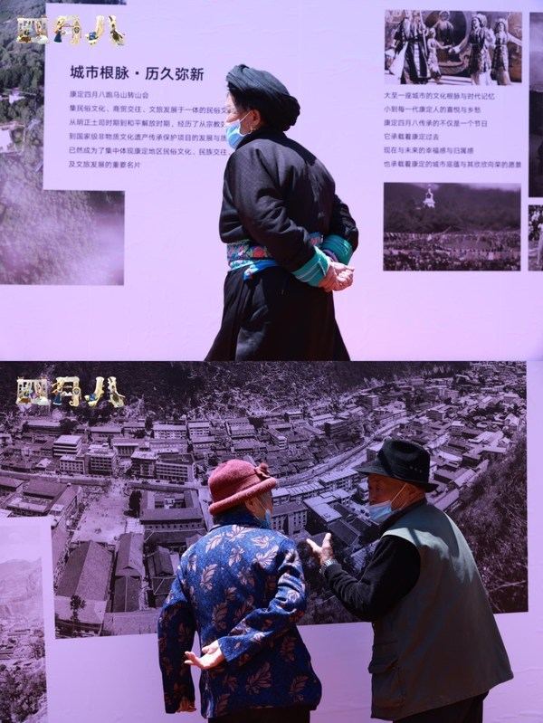 值得一提的是,在情歌广场举办的康定四月八城市记忆展中,城市记忆快闪展整体呈现出非遗文化、民俗传统、旅游资源、美食小吃等康定城具有代表性的城市记忆。更集中收录康定城市的珍贵老照片和众多艺术家的摄影作品。不管是本地市民还是线上观众,都在活动期间共同溯承四月八转山会的历史发展,重拾康定城的文化根脉。
