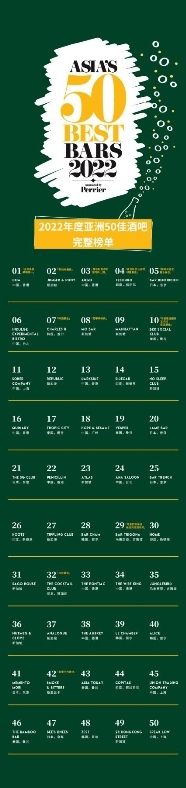 2022年度PERRIER巴黎水世界50佳酒吧全部榜单如下: