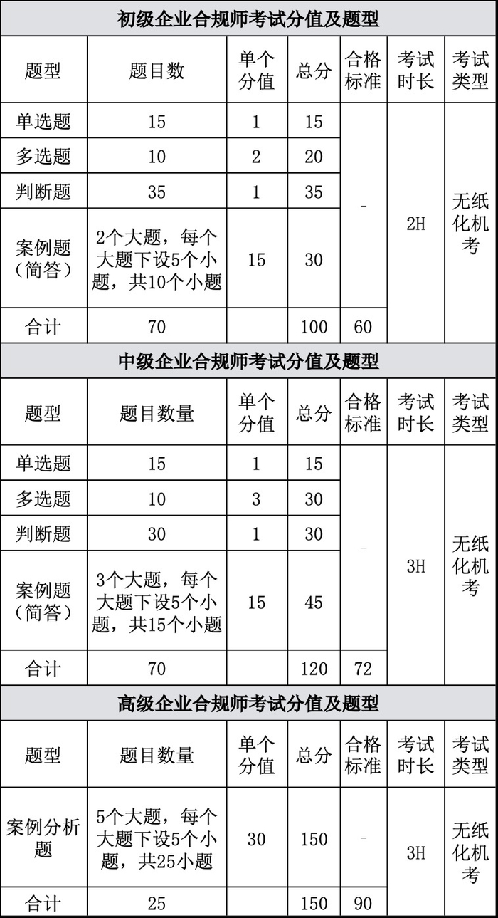 2.分级科目:《企业合规事务管理(初级)》《企业合规事务管理(中级)》《企业合规事务管理(高级)》。