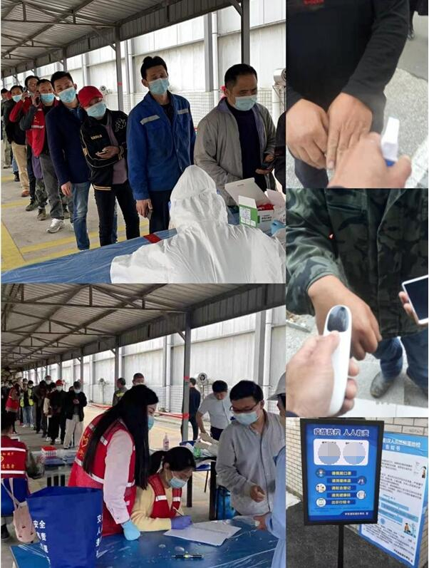 上午7点30第一辆厂车到达厂区,员工们有序下车,排队做核酸检查。为确保将安全的食材呈上“上海人民的餐桌”员工们进入厂区即开始测温、核酸、消毒。以确保上午8时,工厂生产能有序进行。