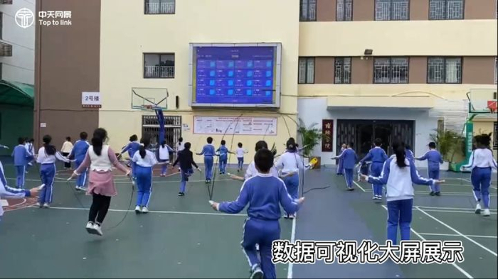 同时该校还配置了体教帮的团体跳绳训练模块,每个学生的实时跳绳数量可以展现在操场大屏中,激发学生间的竞争意识,让他们爱上跳绳爱上运动。
