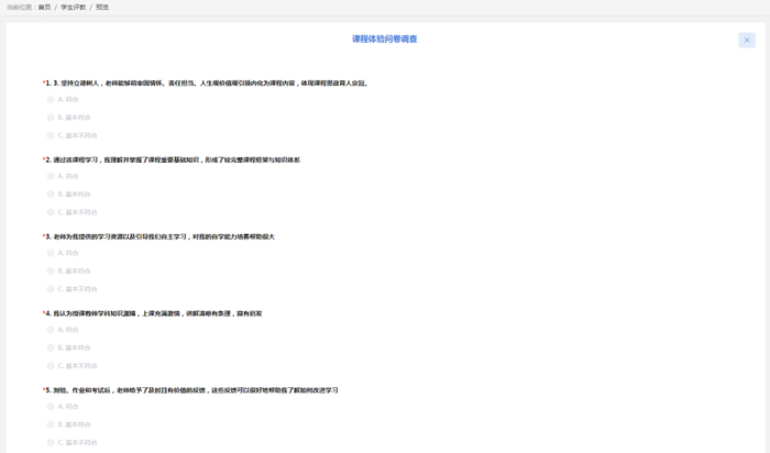 学生也可以对本学期的全部课程进行学习反馈和评价,提升学生学习的主动性。