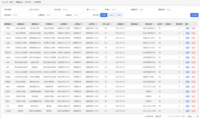 校级管理员和院级管理员可以进行听课任务的管理,发布听课任务,进行教师分配和督导/同行分配,督导/同行可预约听课、听课评价、听课反馈,可查看我的任务、听课统计、听课明细……全方位开展听课评价。