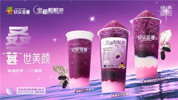 产品是快乐番薯升级之路的立身之本。在产品研发上,快乐番薯加快了上新频率,保持月月上新,甚至是一个月多次上新,迎合时令和市场热点进行创意性研发,针对消费者打造出多样的饮品种类;近日,快乐番薯推出的桑葚宝藏靓靓茶系列和蓝天白云椰等产品,全新升级的配料和高颜值的饮品,完美契合年轻人的饮品需求。在产品包装上,既各具特色的联名包装,也有针对不同产品的个性化包装,实现产品由内而外的年轻化升级。