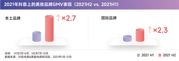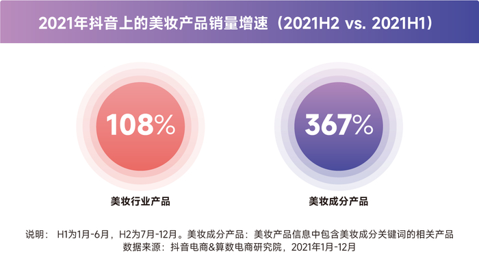 抖音上的美妆产品销售端,美妆成分产品GMV增速以及产品销量增速都比较快。