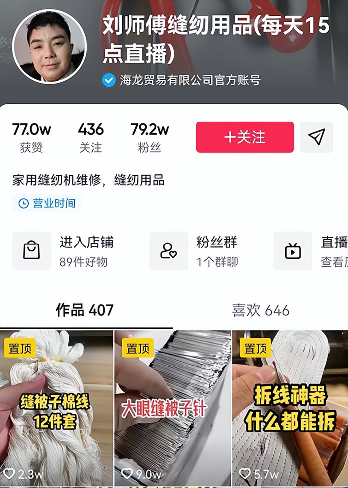 作为售卖缝纫工具的传统小商家,@刘师傅缝纫用品售卖的是大眼缝被子针、缝纫线等商品,刘师傅2021年才开始入驻抖音,做抖音的时间并不长;但是,在了解到巨量千川的小店随心推之后,很快就尝试着通过小店随心推进行了投放,结果让他自己都意想不到:近一年的店铺销售额达到数百万,2021年大促期量巨量千川ROI破10。