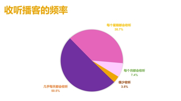 《podfest china 2020中文播客听众与消费调研》数据显示,50%以上调研用户会每天收听播客内容,38%以上用户每周会听。媒介形式的变化,垂类内容的丰富,疫情带来的机会,国民精神消费的升级等,在种种因素的叠加下,诞生了十几年的播客重新站上了风口。内容类型虽分散,但内容质量高且垂直,使播客的用户粘性非常高。
