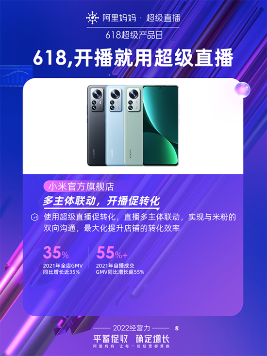 产品品类众多、用户需求多样是小米在搭建直播体系过程中遇到的痛点。据介绍,小米通过超级直播在庞大的用户池中,准确触达到品牌粉丝,进而引导至直播间,形成了清晰、明确的导流链路和购物链路。数据显示,2021年小米天猫旗舰店GMV同比增长近35%,自播GMV同比增长超过55%。