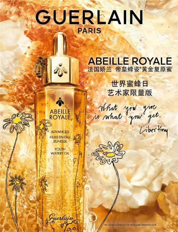 据介绍,第三代帝皇蜂姿黄金复原蜜采用全新配方,在乌埃尚岛传奇黑蜂蜂蜜的基础之上,添加三种来自法国科西嘉岛、希腊伊卡利亚岛和芬兰奥兰岛的海岛蜂蜜,结合珍贵的蜂皇浆提取物和黄金微珠,为使用体验带来奇妙惊喜。而限量版艺术家手绘瓶身,将法国娇兰所传承的法式优雅精粹,与TOMAS LIBERTINY钟爱的花卉、蜜蜂元素塑造而成的可持续创作理念结合,彰显了娇兰致力于将环境保护和艺术追求相结合的品牌宗旨。