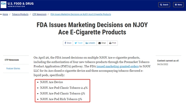 作为电子雾化产品进入美国市场的唯一“入场券”,PMTA一直以高标准、高难度闻名。而就在近日,由FEELM独家代工生产的NJOY也通过了PMTA的认证,这让市场各方对由其研发生产的VUSE Alto系列通过认证,充满了信心。