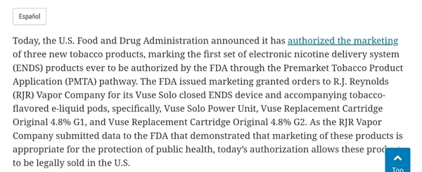 去年10月,美国电子雾化市场传来重磅消息,全世界第一个通过PMTA的电子雾化品牌诞生,VUSE的三款产品笑到了最后。