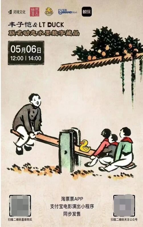 5月6日,LT DUCK小黄鸭& 丰子恺联名NFT动态水墨数字藏品在“淘票票”平台及“鲸探”app公开发售,产品上线不到1分钟火速告罄,每秒钟就有400多份NFT藏品被玩家收入囊中。