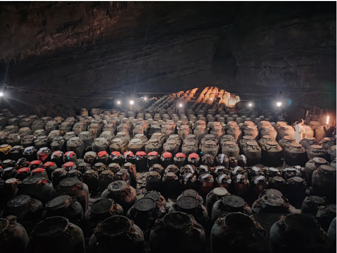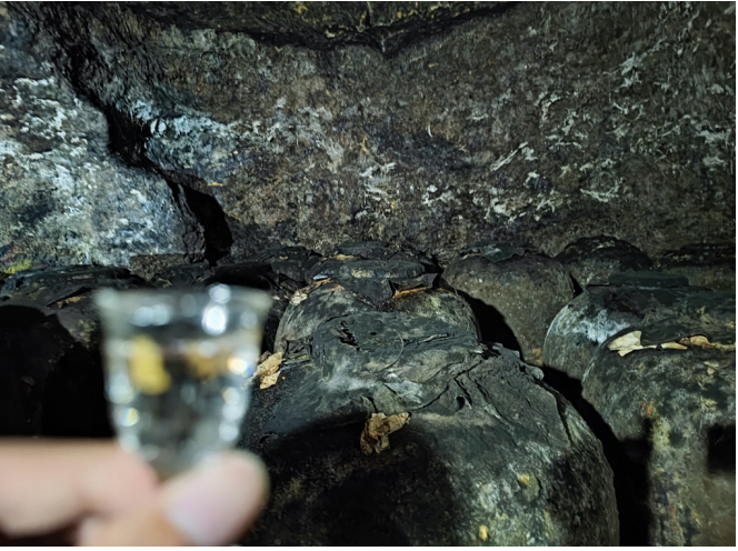 在微生物菌群、酒虫的参与下,原酒在洞中自然循环老熟,醇化生香,杂质释放更加完全;相比一般酒库中贮藏的白酒,口味更加醇厚细膩,酒体更加清澈透明,香味更加芳香馥郁,口感也更加温雅、醇厚、细腻、协调、净爽。