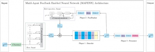 深度神经网络在计算机视觉、自然语音处理、语音合成、人工智能游戏等领域取得了突破性的进展,但现有的大部分神经网络框架只支持单向的数据流动和处理。受到灵长类动物大脑中存在信号反馈机制的启发,杨旸博士及团队提出了“多智体反馈神经网络”(MAFENN)框架,包含三个充分合作的智能体,其中的反馈智能体模拟了灵长类动物大脑中的信号反馈和错误纠正机制,有效提升了神经网络训练过程中的反馈学习能力、特征提取能力、噪声和干扰消除能力。在理论分析方面,团队创新地将MAFENN框架建模成三个玩家的反馈斯塔尔伯格博弈(feedback Stackelberg game),理论证明了其可以确定收敛到博弈均衡点。这项科研成果名为《Multi-Agent Feedback Enabled Neural Networks for Intelligent Communications》(面向智能通信的多智体反馈神经网络),已发表在无线通信领域的国际顶级期刊IEEE Transactions on Wireless Communications。