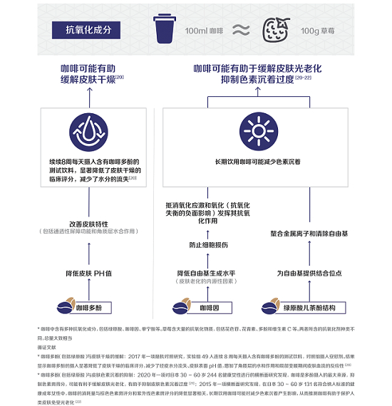 100ml咖啡与100g草莓抗氧化成分含量相当*,助你喝出好肌肤