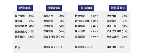 · “健康价值”成为现磨咖啡提频的新晋驱动力,现磨咖啡的健康认知远高于速溶咖啡等其他品类。