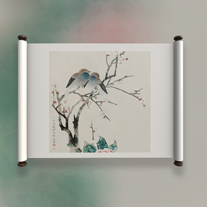 1、《鸟语》:两只小鸟依偎在花枝小憩,花儿温柔,鸟儿俊俏,它们沉醉于美丽的春光之中,也成为美丽春光的一部分。画面构思奇趣,将温婉柔丽的设色特点完美展示,平和中带着灵动,安详中带着温馨。