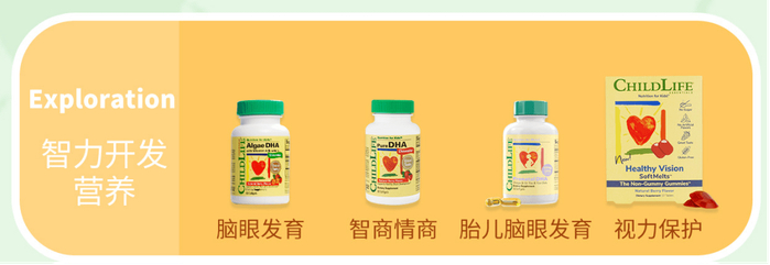 ChildLife作为新一代年轻父母的“赢养”指导者和孩子的童年陪伴者,急父母之所急,及时对原有的DHA产品线进行了补充,推出更适合婴幼儿体质的藻油Plus,建成了从孕妈DHA、鱼油DHA到藻油DHA更加丰富且完善的产品线,满足孩子不同年龄、不同需求的营养补充。