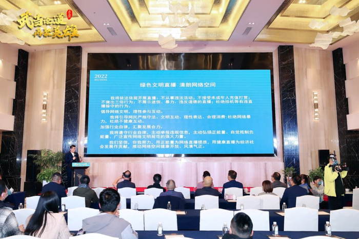 本次峰会发出倡议,要在全省内营造风清气正、正能量引领的网络直播环境,并制定了《湖北网络主播公约》, 得到在场主播们的积极响应。在大赛总冠军涛总裁的引领下,主播们共同宣读了公约。
