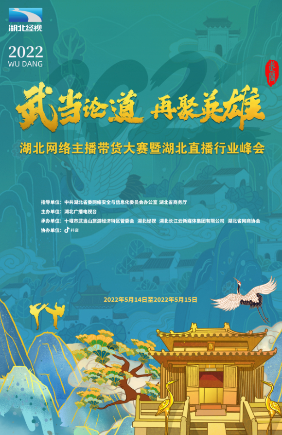 本次活动由中共湖北省委网络安全与信息化委员会办公室、湖北省商务厅 指导,湖北广播电视台 主办,十堰市武当山旅游经济特区管委会、湖北广播电视台电视经济频道、湖北长江云新媒体集团有限公司、湖北省网商协会 承办,旨在进一步打造湖北电商新模式、促进产业健康发展,提升湖北经济、助力湖北品牌走向全球。