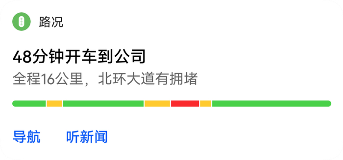 【通勤卡片】明明是同一时间出门却总是迟到?每天瞬息万变的交通问题,让通勤状况百出。通勤卡片会根据实时路况展示最优路线和预计时长。用户可在【负一屏左上角-我的-个人信息-通勤信息】处自行设置出行方式、通勤位置与时间等信息。在雾霾、雨雪、沙尘暴等天气恶劣的日子,或是在交通事故频发的时段或路段,通勤卡片可以提前提醒并规划路线,对时间规划“强迫症”来说简直是福音!