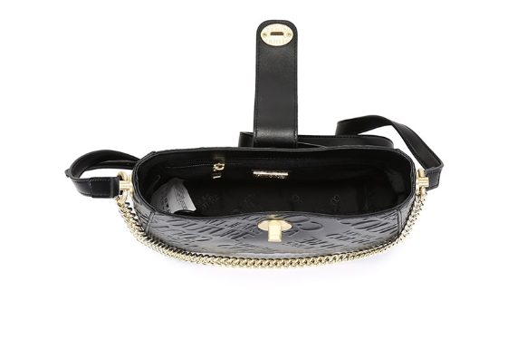 在配色方面,寺库这款包袋也没有太花哨,纯黑的配色,间或的金色金属作为配饰,由内而外散发出轻奢的感觉。寺库这款纯黑的包袋没有在颜色上做文章,但是依然让人感觉充满设计感。寺库这款包袋,包身上饰有范思哲品牌的英文字母标志,彰显品牌气质的同时也为包袋增加了立体感。