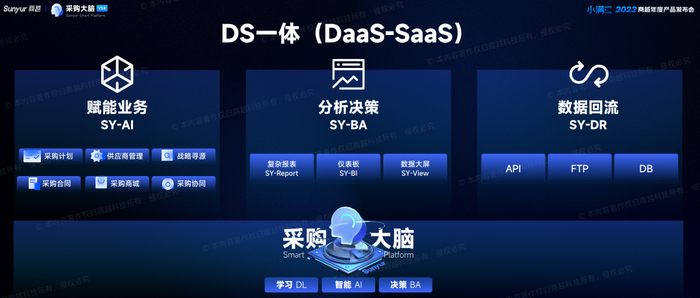 值得一提的是,PaaS层的商越采购大脑3.0是驱动采购业务提效的核心,负责融合业务过程中产生的的海量商品和业务数据, 沉淀采购经验、智能执行采购业务、辅助采购决策。
