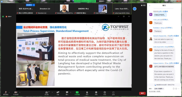 5月17日上午,由联合国开发计划署主办的亚太地区应对新型冠状病毒肺炎疫情能力建设网络研讨会如期举行,河北省廊坊市医疗废物监管模式在会上被作为中国经验汇报分享。