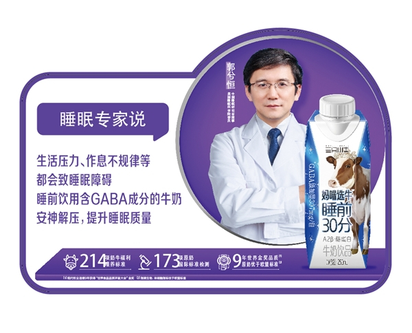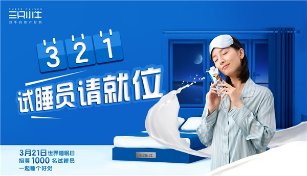 作为功能牛奶新标杆品牌,三只小牛一直以消费者需求为中心,想消费者之想,深挖饮奶专属需求,开启“科学饮奶计划”,为消费者定制个性化功能牛奶。三只小牛发现随着社会节奏加快、生活压力增大,失眠已逐渐成为国民的普遍痛点,据中国睡眠研究会调查显示,我国有超3亿人存在睡眠障碍,每个夜晚总是在床上辗转反侧,顺利入睡成了一项“考验”。