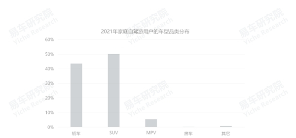 2021年,家庭自驾游用户的车型品类,仍以SUV、轿车为主,说明家庭自驾游仍处市场酝酿期,多数诉求相对比较基础,轿车、SUV等现有车型就能较好承担。反过来也可以这么理解,未来如家庭自驾游持续崛起,MPV等更适合家庭自驾游的,有很广阔发展空间;