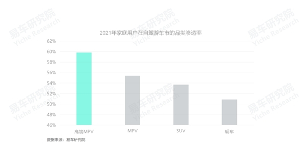在自驾游车市,2021年高端MPV的家用渗透率近60%,2022-2026年如家庭自驾游购车诉求强势崛起,将引爆高端MPV车市