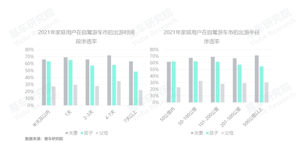 2021年家庭自驾游集中周末与小长假,寒暑假渗透率高,满足孩子需求是车企角逐家庭自驾游车市的关键切入点