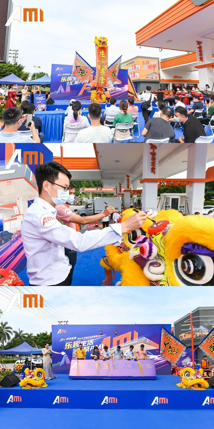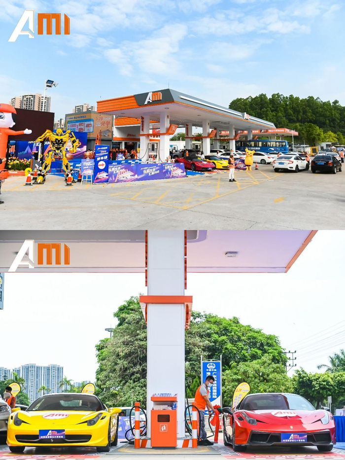 5月20日,AMI阿美能源鹤山小润站隆重开业,各界人士前来祝贺。有法拉利加州 、法拉利坡托非诺等豪车助阵宣传,现场有青春靓丽的模特秀、专业的舞狮队表演当然也少不了,现场充值领券还能免费加油、开业礼包现金红包丰富多样。